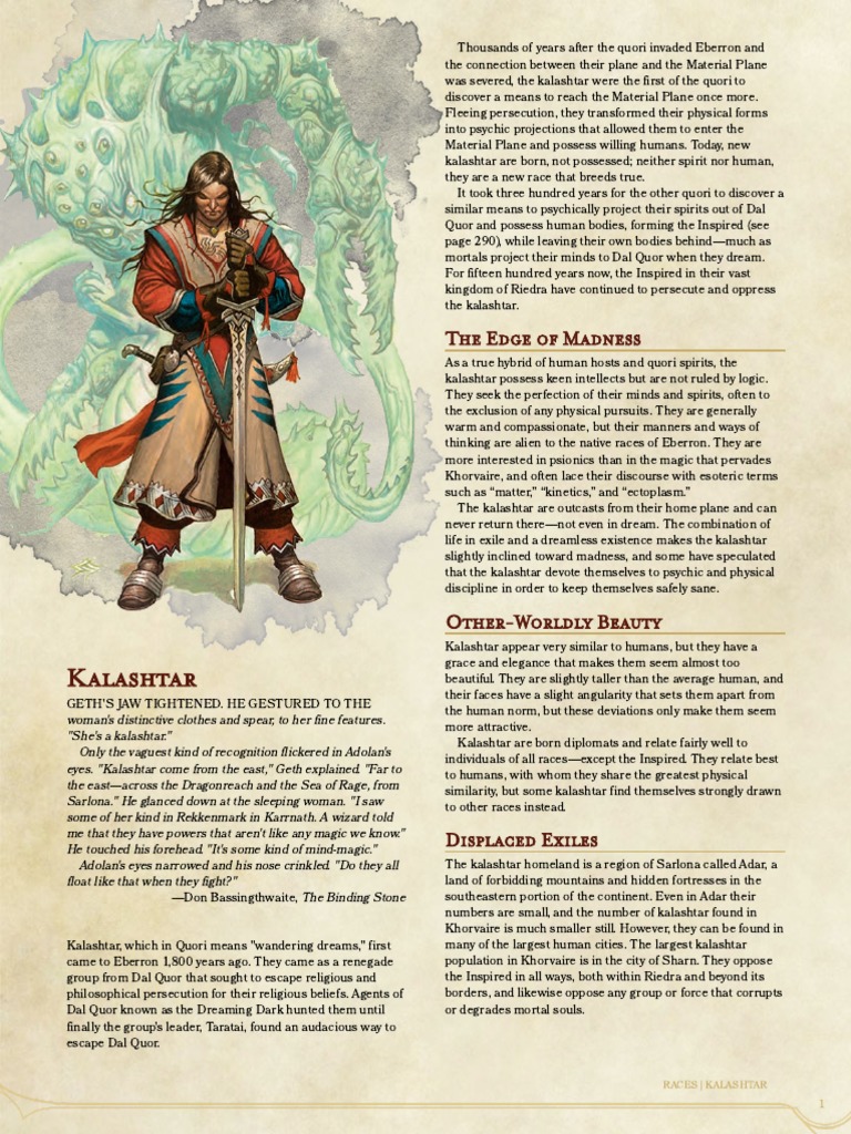 Kalashtar 5E Pdf : Kalashtar are a race native to the dungeons & dragons setting of eberron, and are one of its four unique races, alongside the changeling, shifter and warforged.